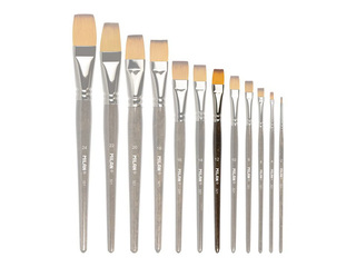 Kvalitatīva plakana otiņa ar īsu koka kātiņu un sintētiskām šķiedrām (Ø 0.10mm), ideāli piemērota akvareļu, akrila, eļļas un citu uz ūdens bāzes balstītu krāsu tehnikām. Kātiņš pārklāts ar aizsargājošu laku, otiņas kopējais garums – 190mm.
