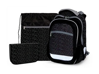 1. Junior school mugursoma - kvalitatīva, ergonomiskas formas viegla skolas mugursoma aprīkota ar atstarojošiem elementiem un anatomiski veidotu muguru ar pamatīgu konstrukciju.