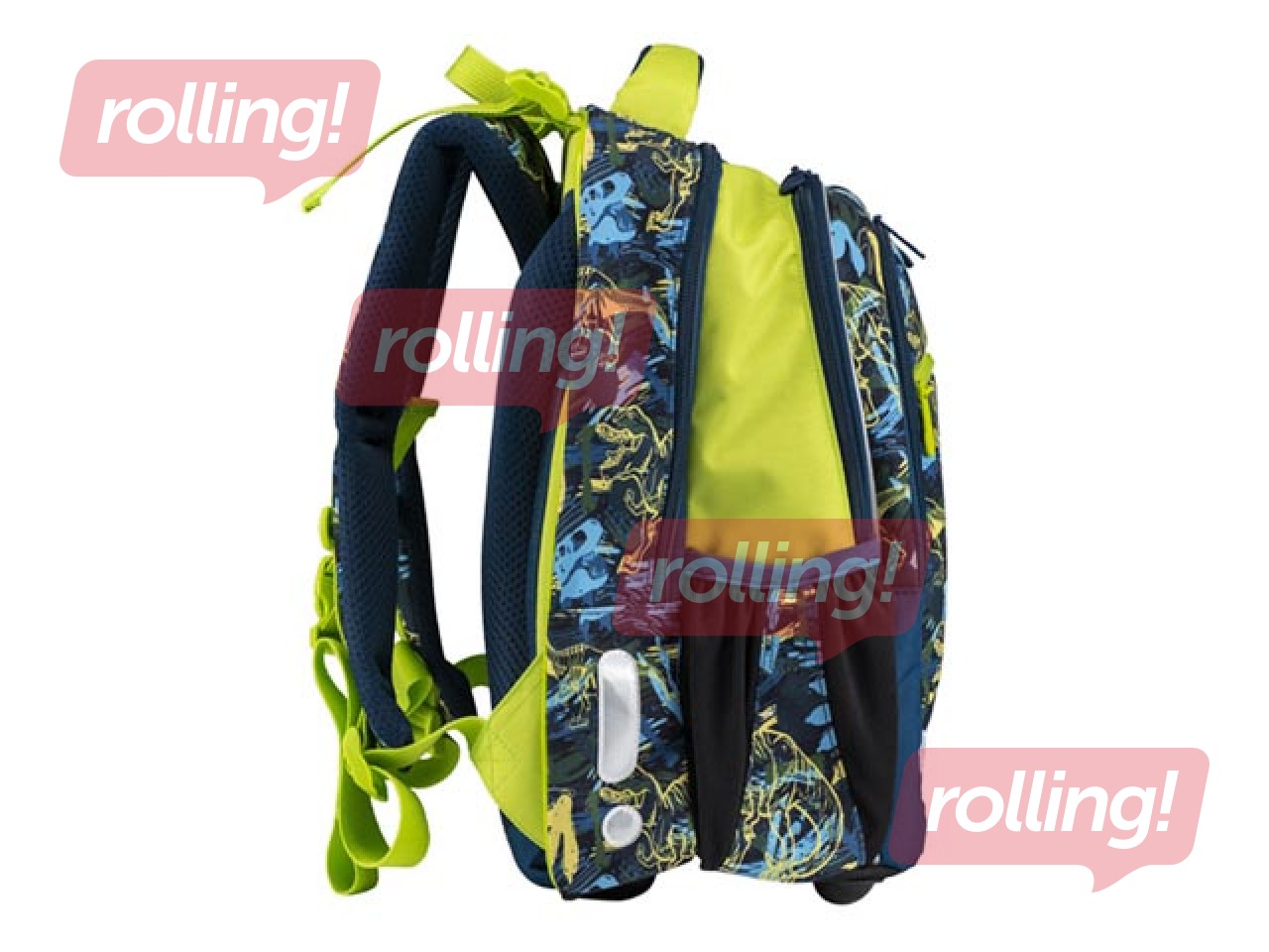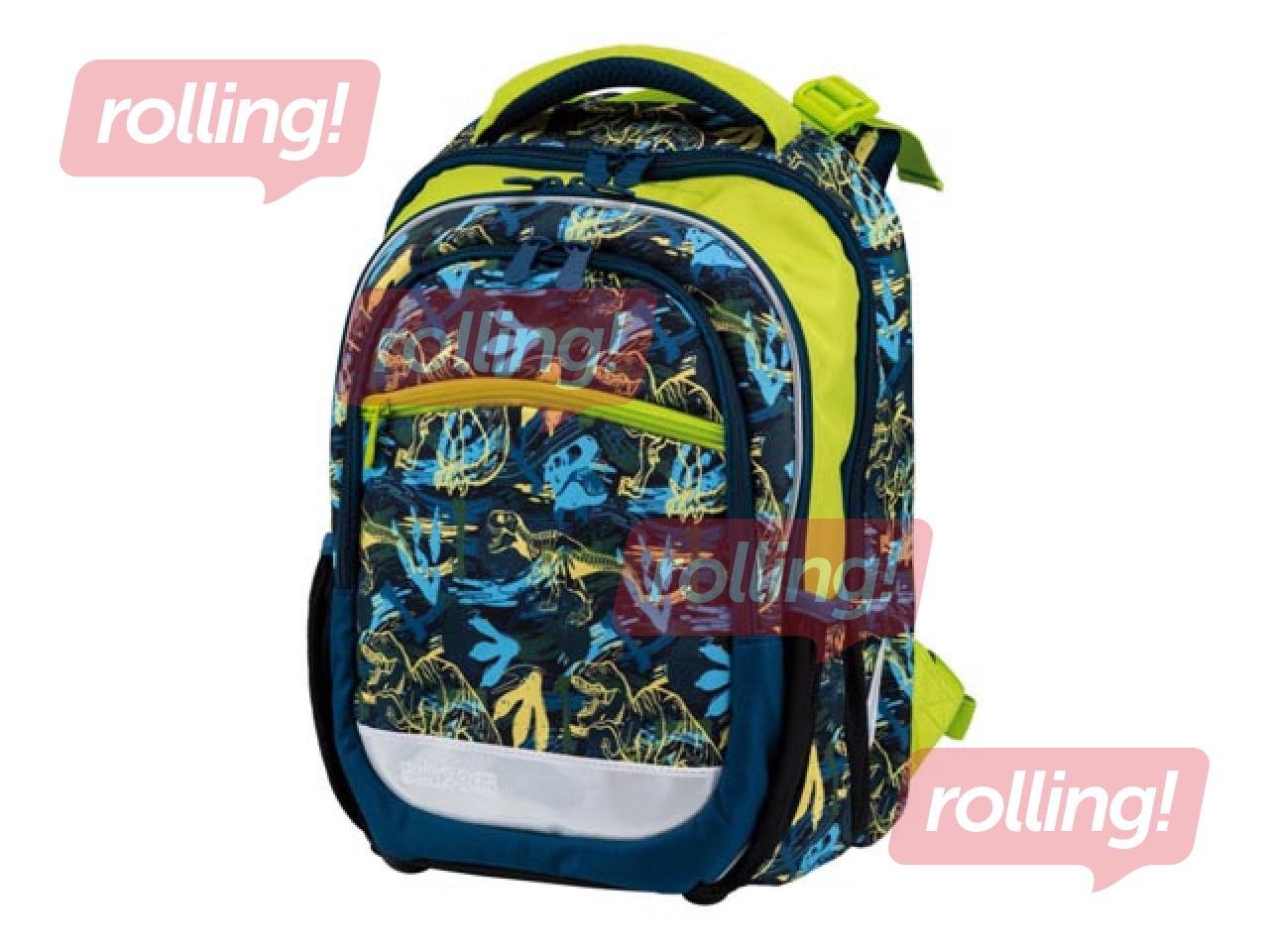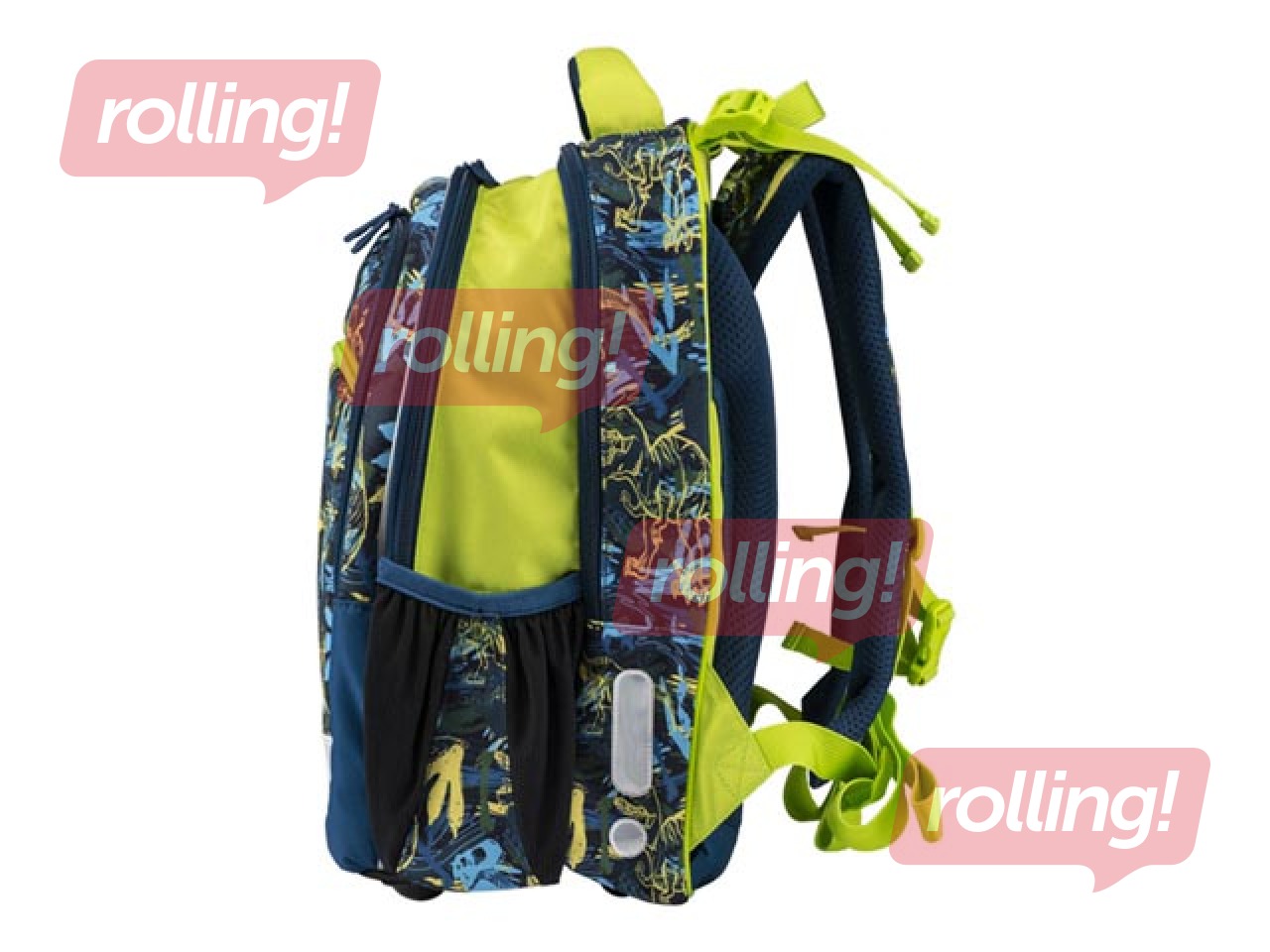 Kvalitatīva, ergonomiskas formas viegla skolas mugursoma ir aprīkota ar atstarojošiem elementiem un anatomiskas formas muguru ar cietu konstrukciju.