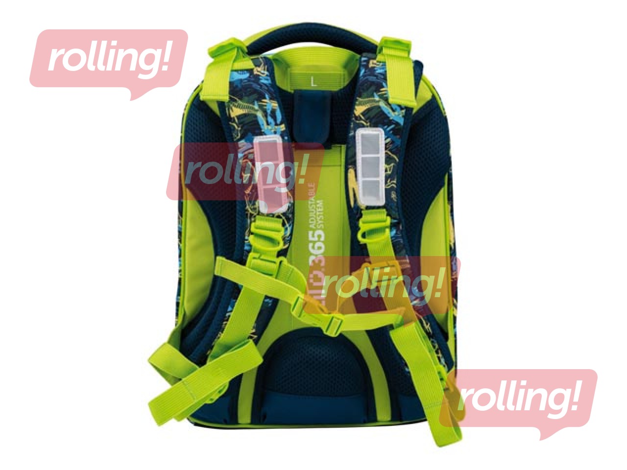 3D muguras sistēma - mugursoma lieliski der muguras daļā. Anatomiskais aizmugurējais panelis pielāgojas bērna mugurkaulam, un Air Flow sistēma un elpojošais polsterējums nodrošina gaisa cirkulāciju un ērtu valkāšanu. Krūškurvja siksna ar kvalitatīvu sprādzi nodrošina ērtu somas piekļaušanos bērna mugurai.