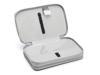 Penāļa otrajā nodalījumā, ir caurspīdīga kabata un 9 stipras gumijas lentes, dažāda izmēra rakstāmpiederumiem.