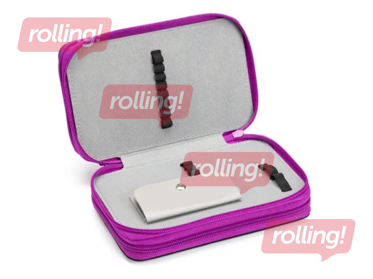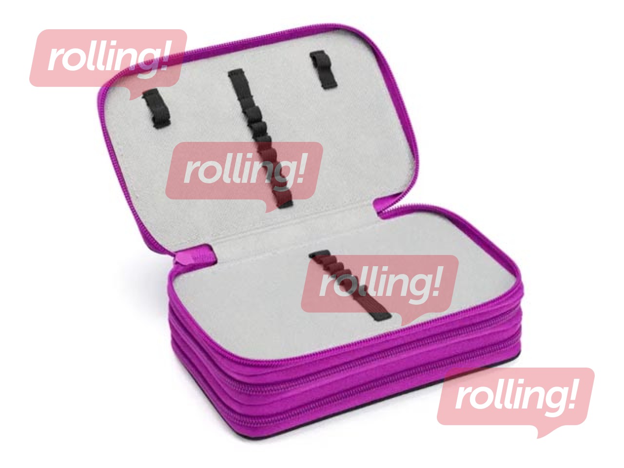 Pirmajā nodalījumā ir 8 cilpas krītiņiem, 2 cilpas zīmuļiem un viena lielāka pildspalvai, tajā ir arī cilpas dzēšgumijai un asināmajam un neliela kabatiņa sīkumiem , kas aiztaisāma.
