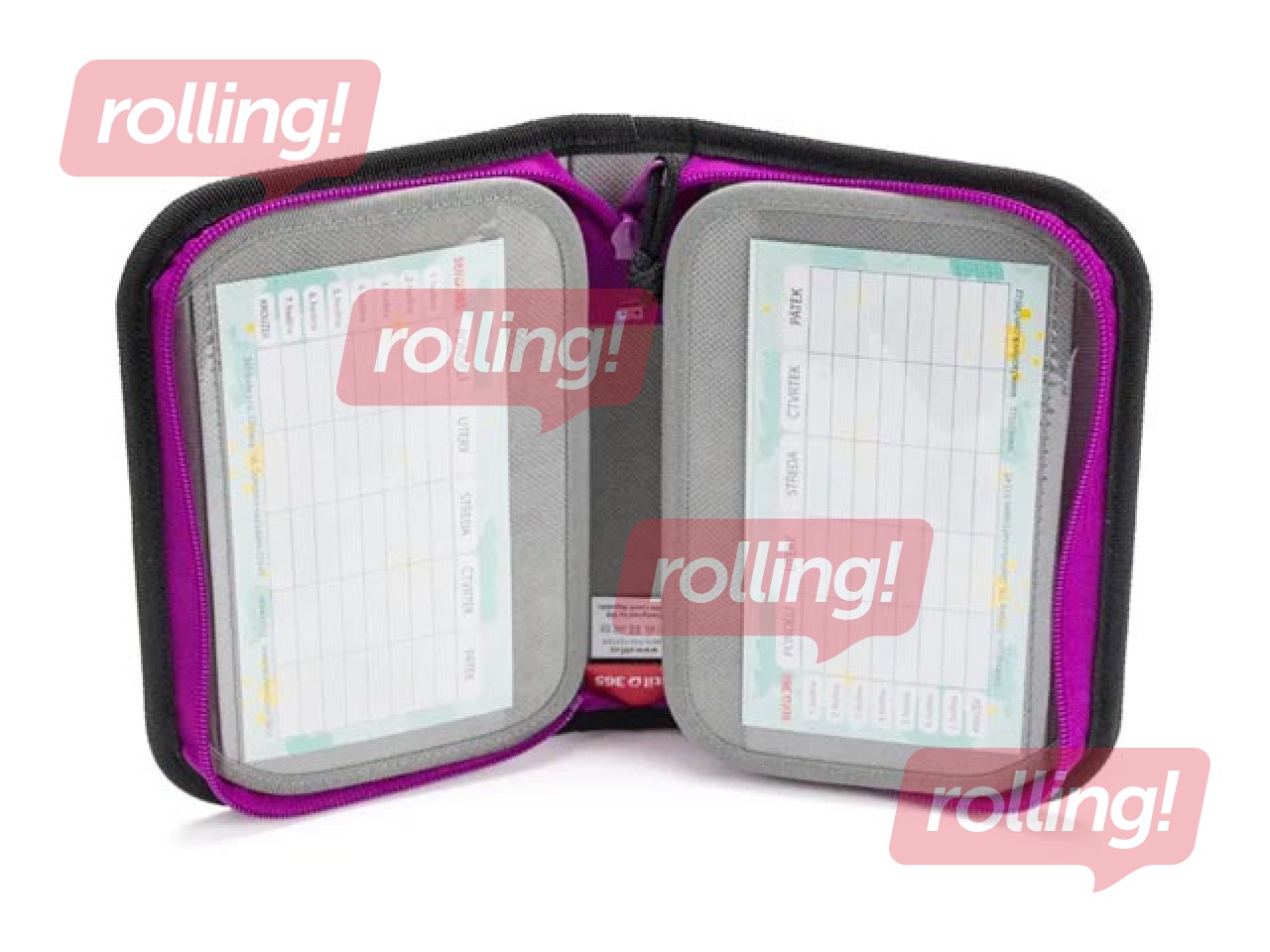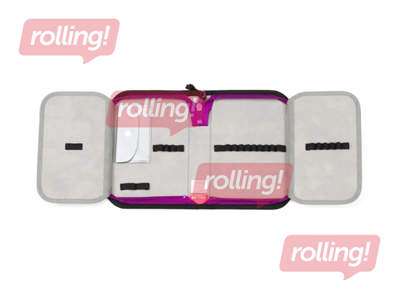 Penālis ar diviem iekšējiem atlokiem un rāvējslēdzēju. Ir daudzi nodalījumi - 23 stipras dažāda izmēra gumijas lentes, lai ērti uzglabātu lielākus krītiņus vai rakstāmspalvas, lineālus, asināmos un dzēšgumijas.