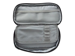 Ietilpīgs penālis. Izmērs: 210x90x50 mm. Viens ietilpīgs nodalījums ar uzticamu rāvējslēdzēju, sieta kabata ar elastīgu joslu rakstāmpiederumiem iekšpusē un vidusdaļa nodrošina pildspalvu nostiprināšanu pie pildspalvas cilpām. 100% poliesters Oxford ar poliuretāna impregnēšanu ir izturīgs pret nodilumu un salu.