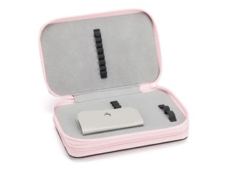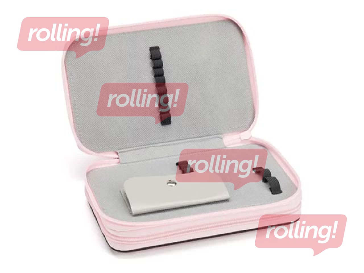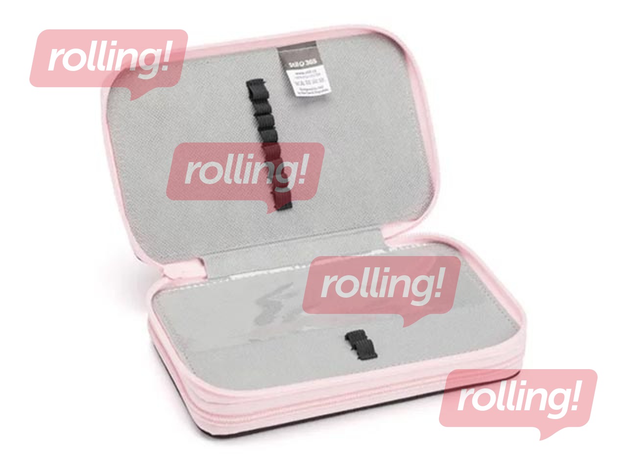 Pirmajā nodalījumā ir 8 cilpas krītiņiem, 2 cilpas zīmuļiem un viena lielāka pildspalvai, kā arī neliela kabatiņa sīkumiem, kas aizverama.