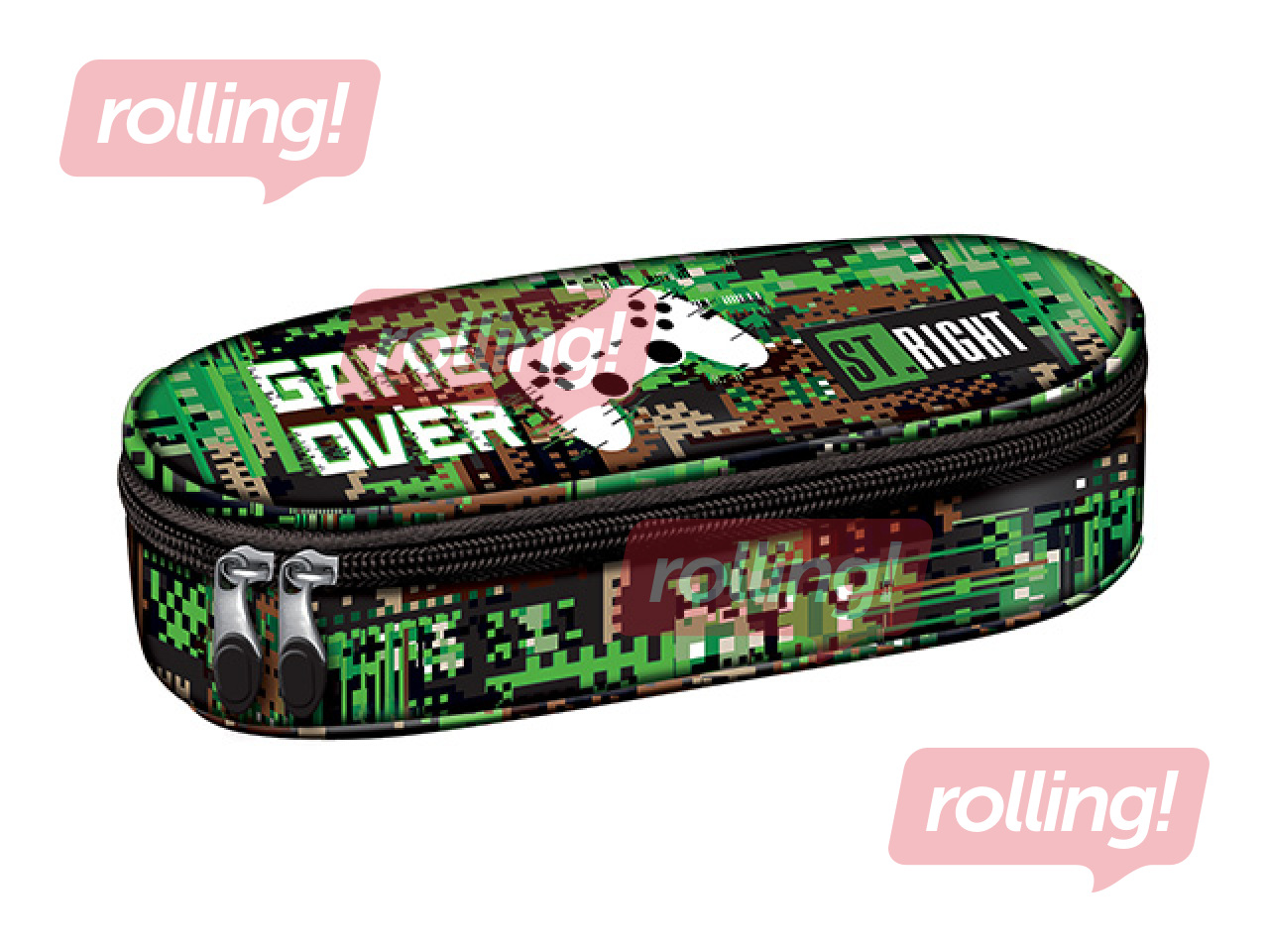 Penālis ar vienu ietilpīgu galveno nodalījumu un papildu atloku ar vietu rakstāmpiederumiem un kabata ar rāvējslēdzēju.