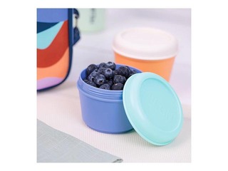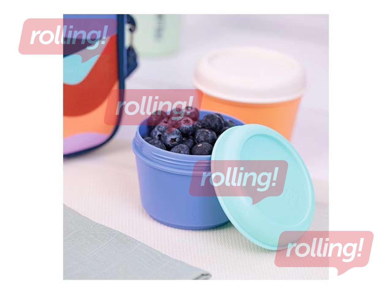 Hermētiska apaļa pusdienu kaste, sērija The Fun. Zils trauciņš ar vāciņu tirkīza krāsā. Uzskrūvējiet vāku, kas nodrošina hermētisku aizvēršanu. Piemērots sildīšanai mikroviļņu krāsnī ar atvērtu vāku, lai atbrīvotu tvaiku (maks. 70ºC). Piemērots uzglabāšanai saldētavā (līdz -20ºC). Piemērots mazgāšanai trauku mazgājamajā mašīnā (maks. 70ºC). Vākus un konteinerus var viegli sakraut kopā. Materiāls: BPA nesaturoša plastmasa. Izmēri: 10 Ø x 7 cm. Tilpums: 0,25 litri.