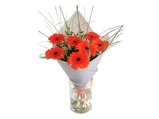 Ziedu pušķis no 7 mini gerberām, 40cm