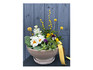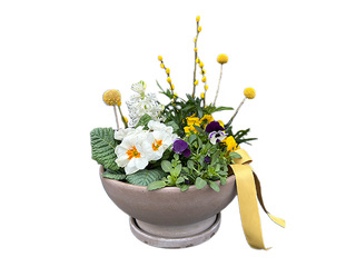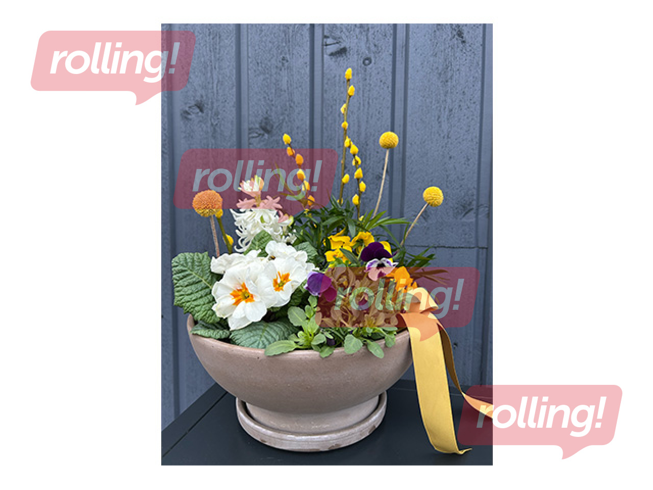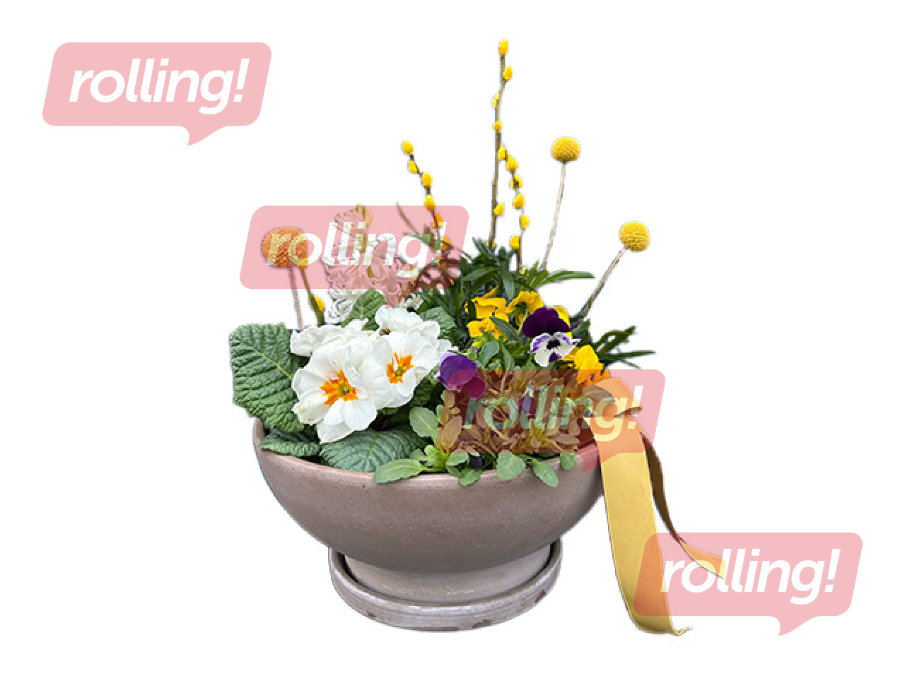 Eleganta kompozīcija ar pieciem rūpīgi izvēlētiem augiem un dekoratīvajiem elementiem. Māla trauks piešķir dabisku izskatu un lieliski papildina jebkuru interjeru. Šī kompozīcija ir piemērota mājām, birojam vai kā dāvana.