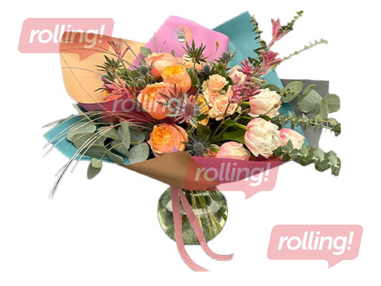 Ziedu pušķis no rozēm, tulpēm un zaļumiem, Ø52cm