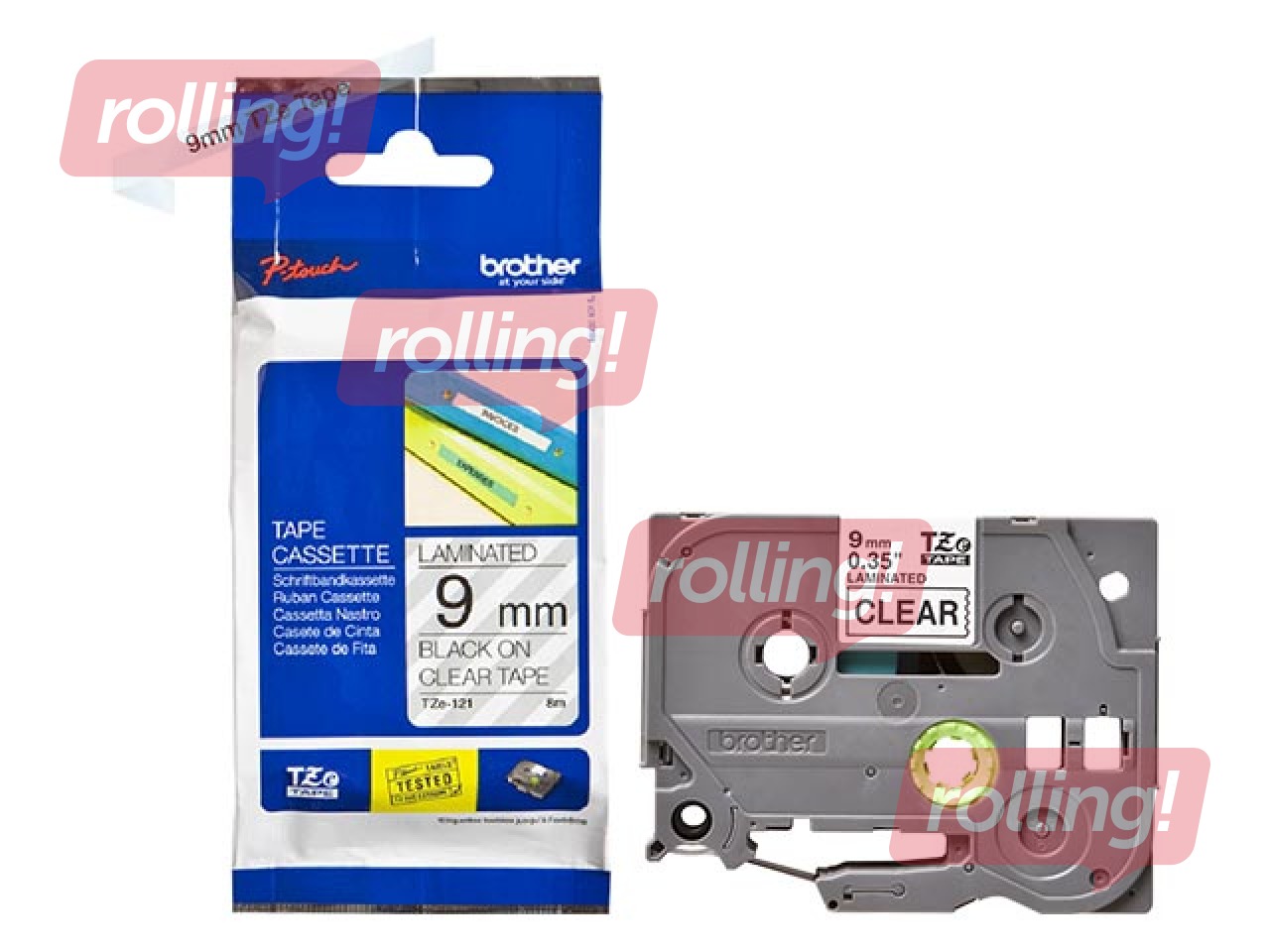 Lente Brother TZe-121, Melns uz caurspīdīga, 9mm, 8 m, laminēta