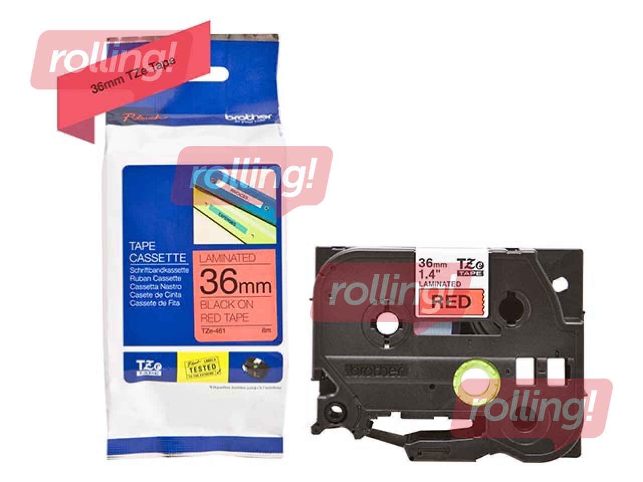 Lente Brother TZ 461, Melns uz sarkana, 36mm, 8 m, laminēta