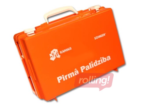 Pirmās palīdzības aptieciņa - koferis uzņēmumiem. Ļoti ērti lietojams - ar atsevišķiem nodalījumiem un sienas turētāju. Lai atvērtu nav nepieciešams noņemt no turētāja.