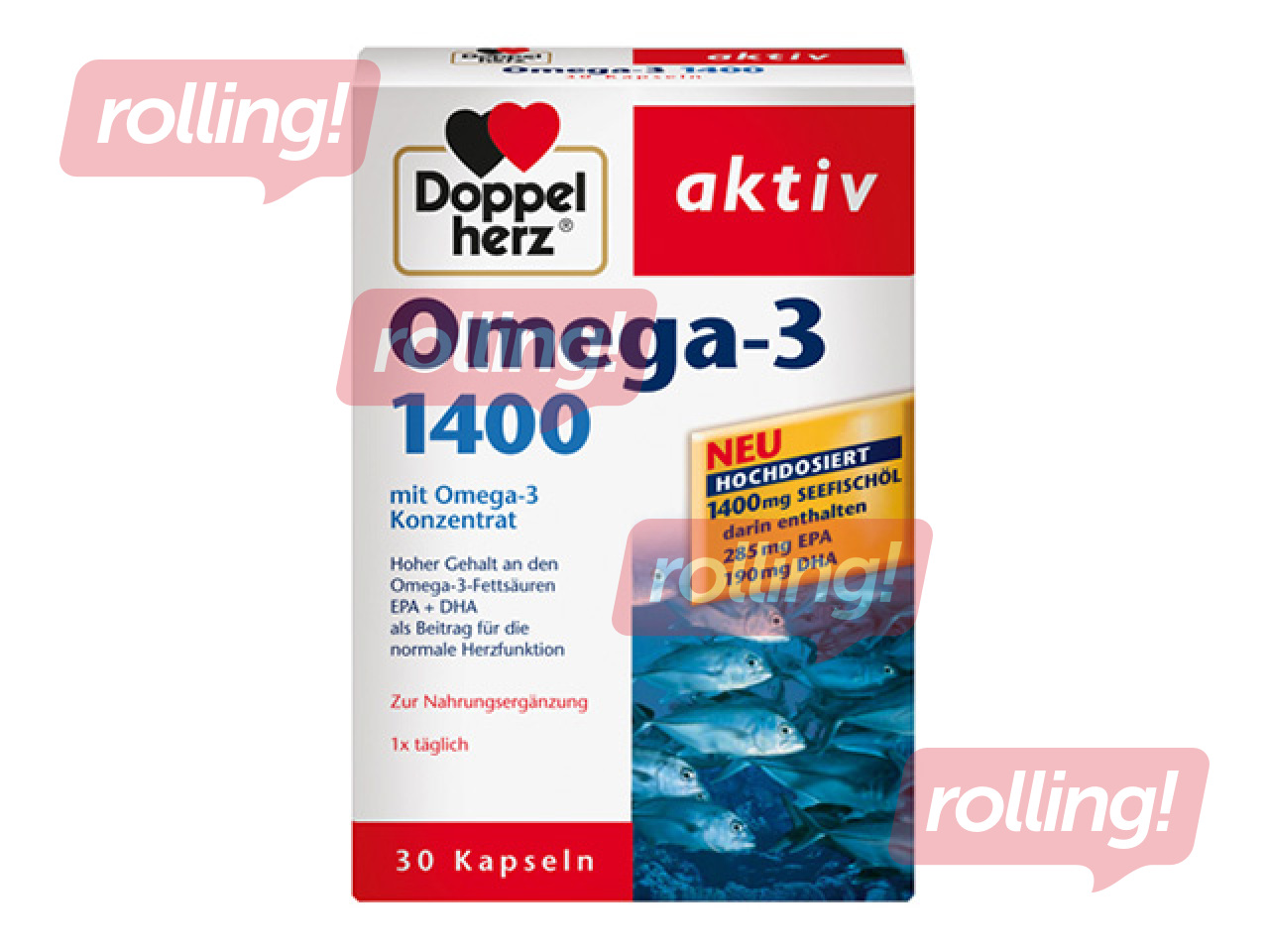Uztura bagātinātājs Doppelherz, Omega-3, Laša eļļa, 1400mg, 30 kapsulas