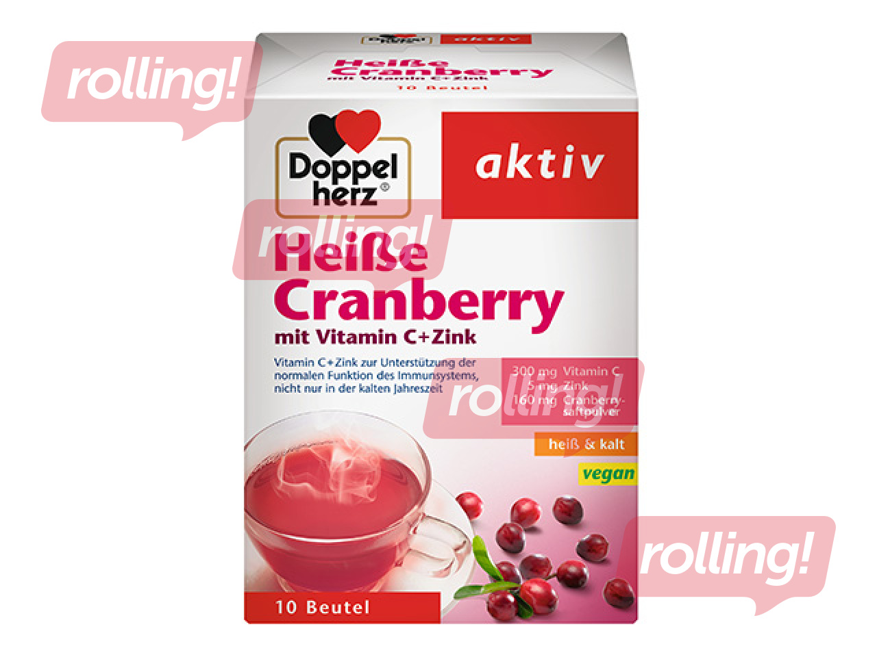 Uztura bagātinātājs Doppelherz, karstais dzērveņu dzēriens ar C vitamīnu un cinku, 10paciņas