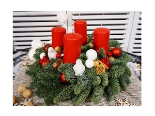 Adventes vainaga krāsas, izkārtojums un spilgtums var atšķirties no bildē redzamā. Atkarībā no pieprasījuma, var nebūt pieejami kādi no attēlā redzamajiem dekoriem, bet mūsu floristi tos aizstās ar līdzvērtīgiem, saglabājot vainaga dizainu un stilu.