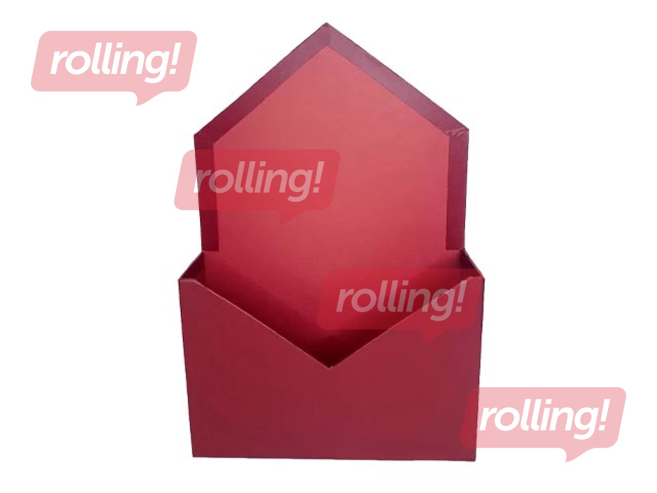 Eleganta un stilīga dāvanu kaste-aploksne ziediem sarkanā krāsā. Šī kaste ir ideāli piemērota ziedu kompozīciju pasniegšanai īpašos notikumos, piemēram, dzimšanas dienās, kāzās vai svētkos. Tai ir vienkārša, taču izsmalcināta forma, kas piešķir dāvanai papildu šarmu. Kaste-aploksne ir piemērota arī nelielu dāvanu iepakošanai un nodrošina stilīgu un drošu iepakojumu.
