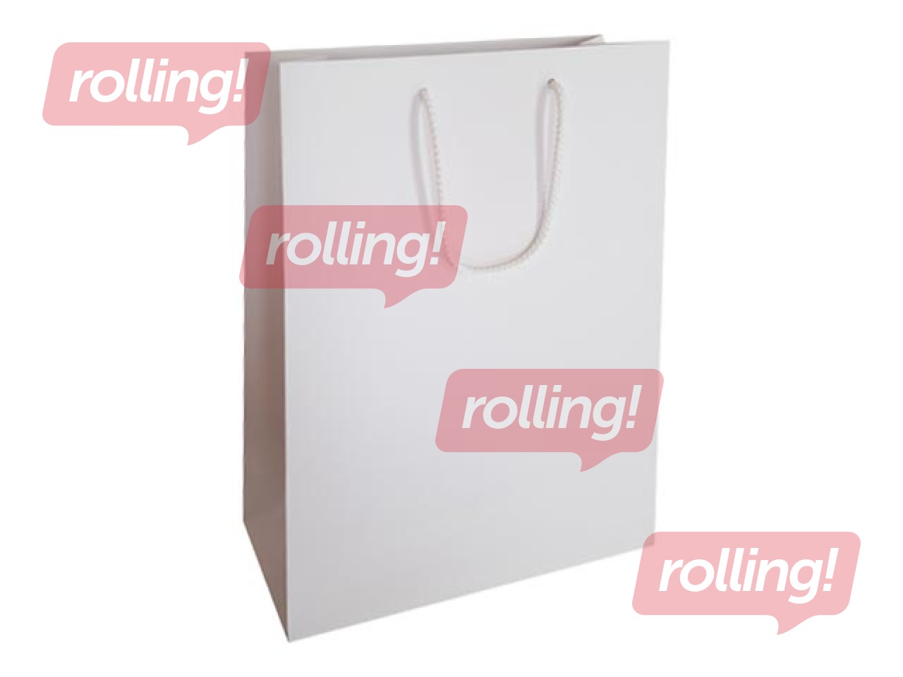 Papīra maisiņš ar auduma rokturi, matēti balts, 230x100x330mm