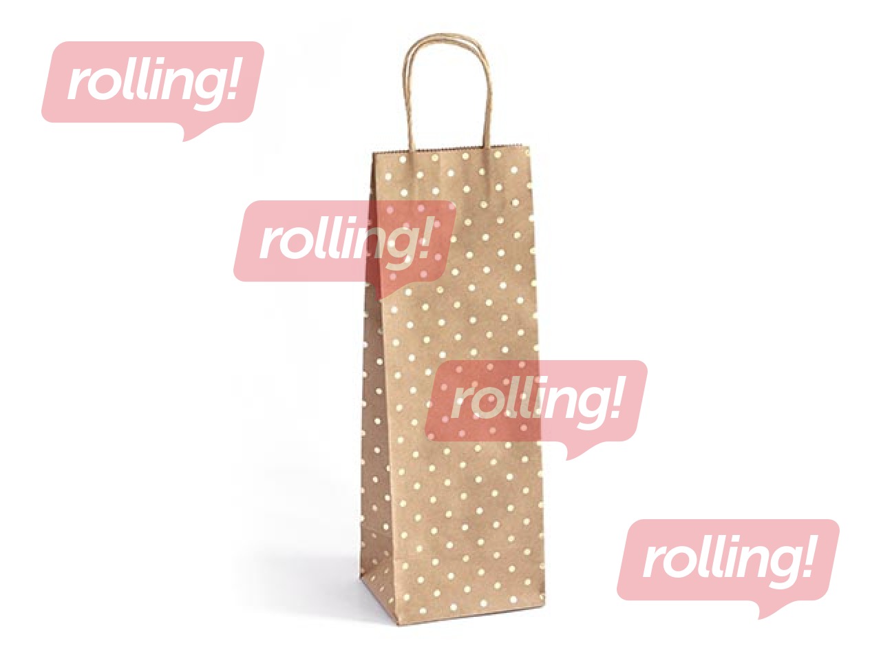 Papīra maisiņš ar rokturiem, 120x100x350mm, brūns ar zelta punktiņiem, 5 gab