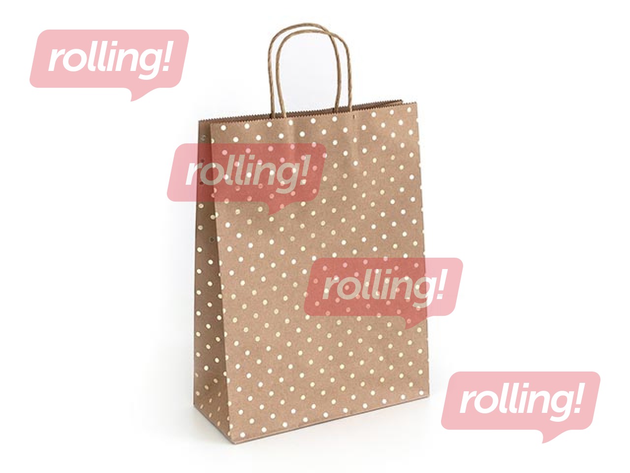 Papīra maisiņš ar rokturiem, 120x100x350mm, brūns ar zelta punktiņiem, 5 gab