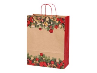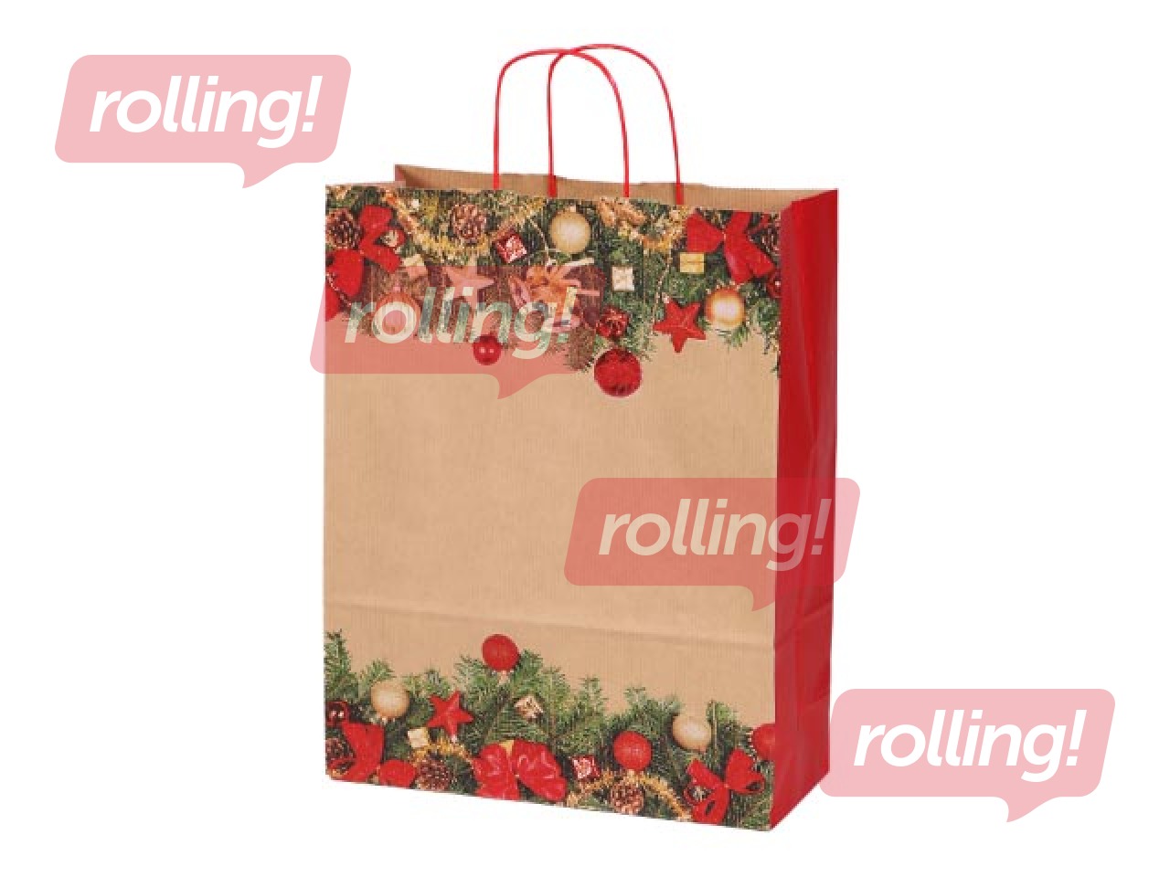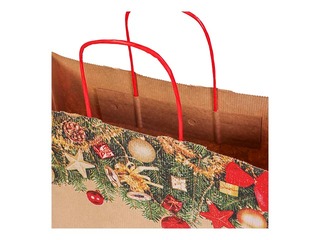 Dāvanu maisiņš Cortina Rosso ar rievotu papīru, sarkaniem rokturiem un apdruku uz matētās puses.