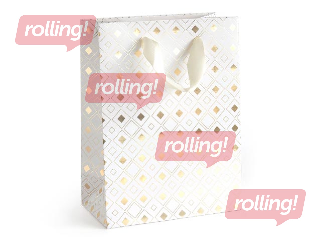 Papīra maisiņš ar rokturiem, 150x80x200mm, balts ar zelta motīvu, 5 gab.