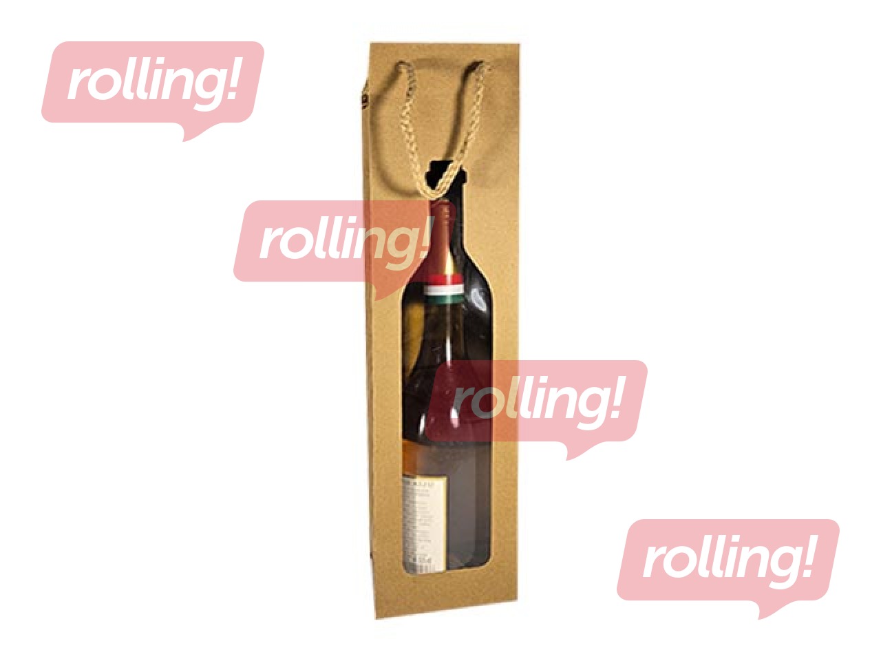 Papīra dāvanu maisiņš pudelēm ar logu, brūns, 90x85x370mm