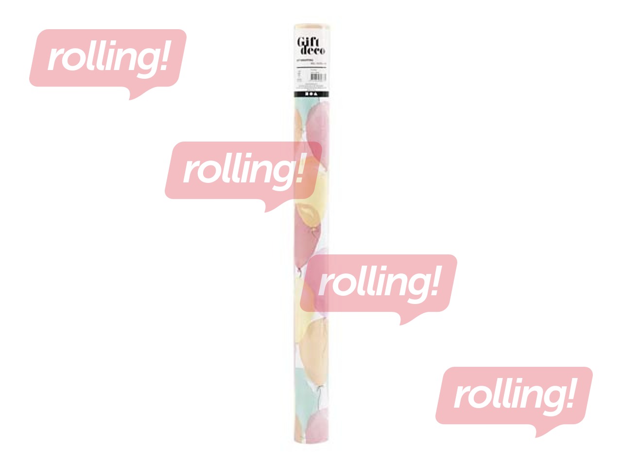 Dāvanu papīrs ruļļos ar baloniem, 50x 500 cm