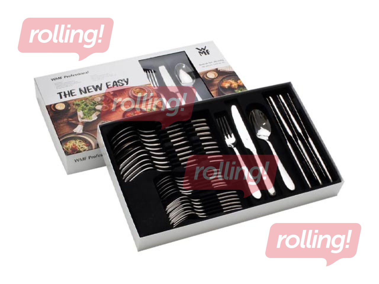 Komplektā ietilpst: 6 ēdamkarotes, 6 galda dakšas, 6 galda naži, 6 kafijas/tējas karotes, 6 kūku dakšiņas. Galda piederumi ir izgatavoti no Cromargan® 18/10 nerūsējošā tērauda. Sudrabam līdzīgs spīdums, Augsta izturība pret koroziju un skābēm. Viegli kopjams. Droši mazgāšanai trauku mašīnā, higiēnisks un bez garšas. Visi naži ir monobloka naži no 18/0 asmens tērauda.