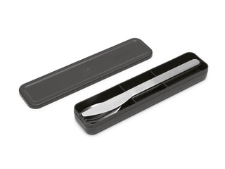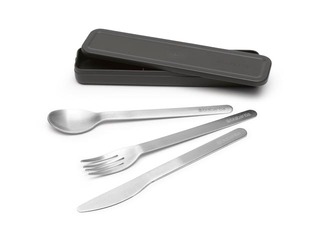 Aizmirsti par vienreiz lietojamiem plastmasas galda piederumiem – izvēlies atkārtoti lietojamo Brabantia Make&Take 3 daļīgo galda piederumu komplektu! Klasisks nazis, dakšiņa un karote no augstas kvalitātes nerūsējošā tērauda. Viegli tīrāmi, piemēroti mazgāšanai trauku mazgājamajā mašīnā, ērti ievietoti kompaktā uzglabāšanas futrālī. Komplekts, ko izmantosi atkal un atkal!