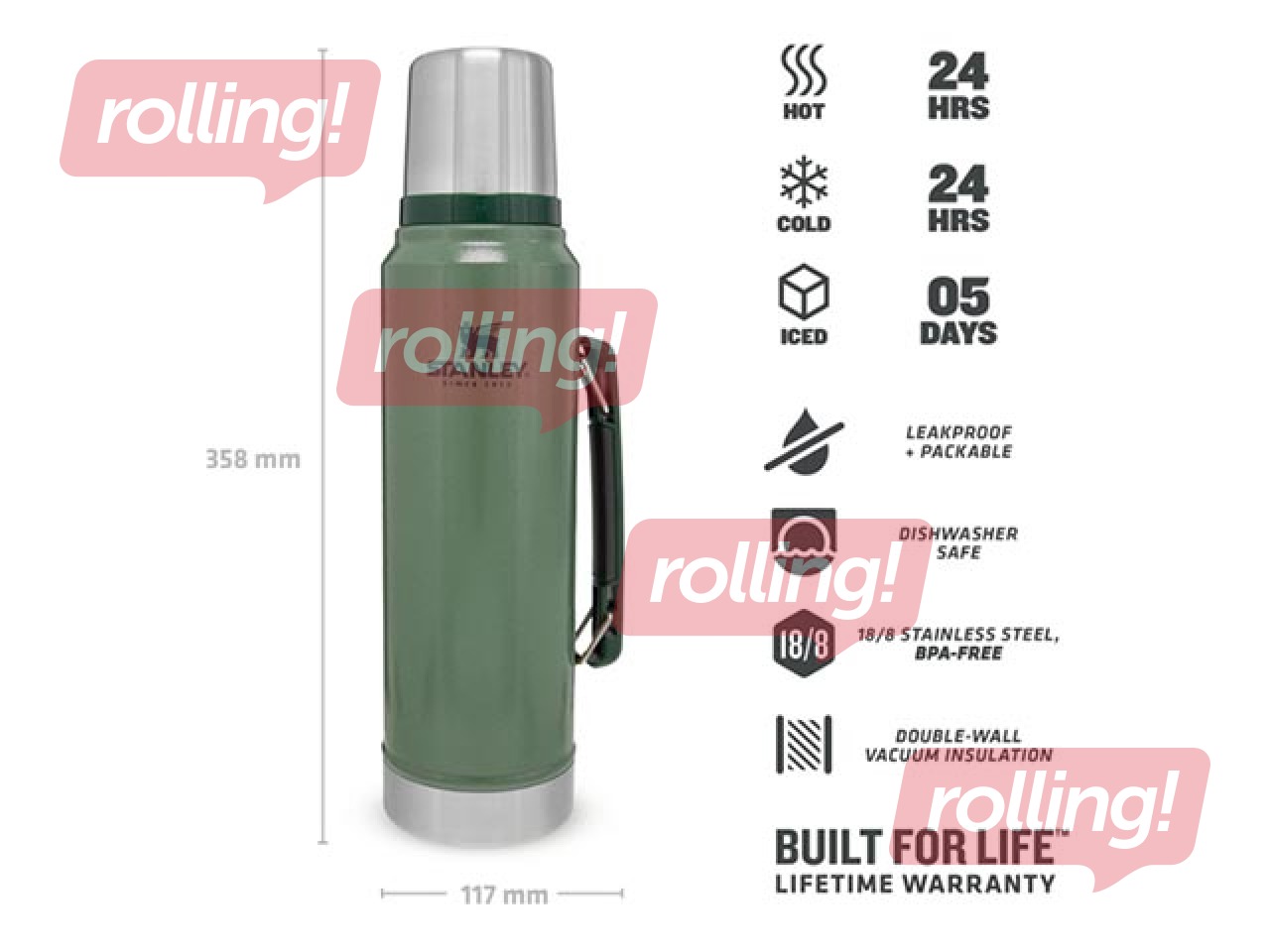 Termoss Stanley, The Legendary Classic Bottle, zaļš, 1l