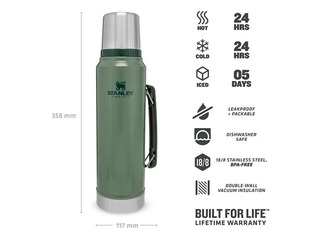 Stanley Legendary Classic termoss ir bestsellers termosu pasaulē. Tam ir sena vēsture, kas aizsākas tālajā 1913.gadā. Stanley termosi vienmēr būs sastopami gan piknikos dabā, gan virtuvēs un birojos. Šis zīmols ir iemantojis cilvēku uzticību jau daudzās paaudzēs. Piepildiet savu termosu ar kafiju, tēju, ūdeni, pienu, sulu,vai jebkuru citu dzērienu. Jūs to varat izmantot atrodoties kā mājās, tā arī darbā, birojā, dodoties brīvā dabā, kempingā, ceļojot.