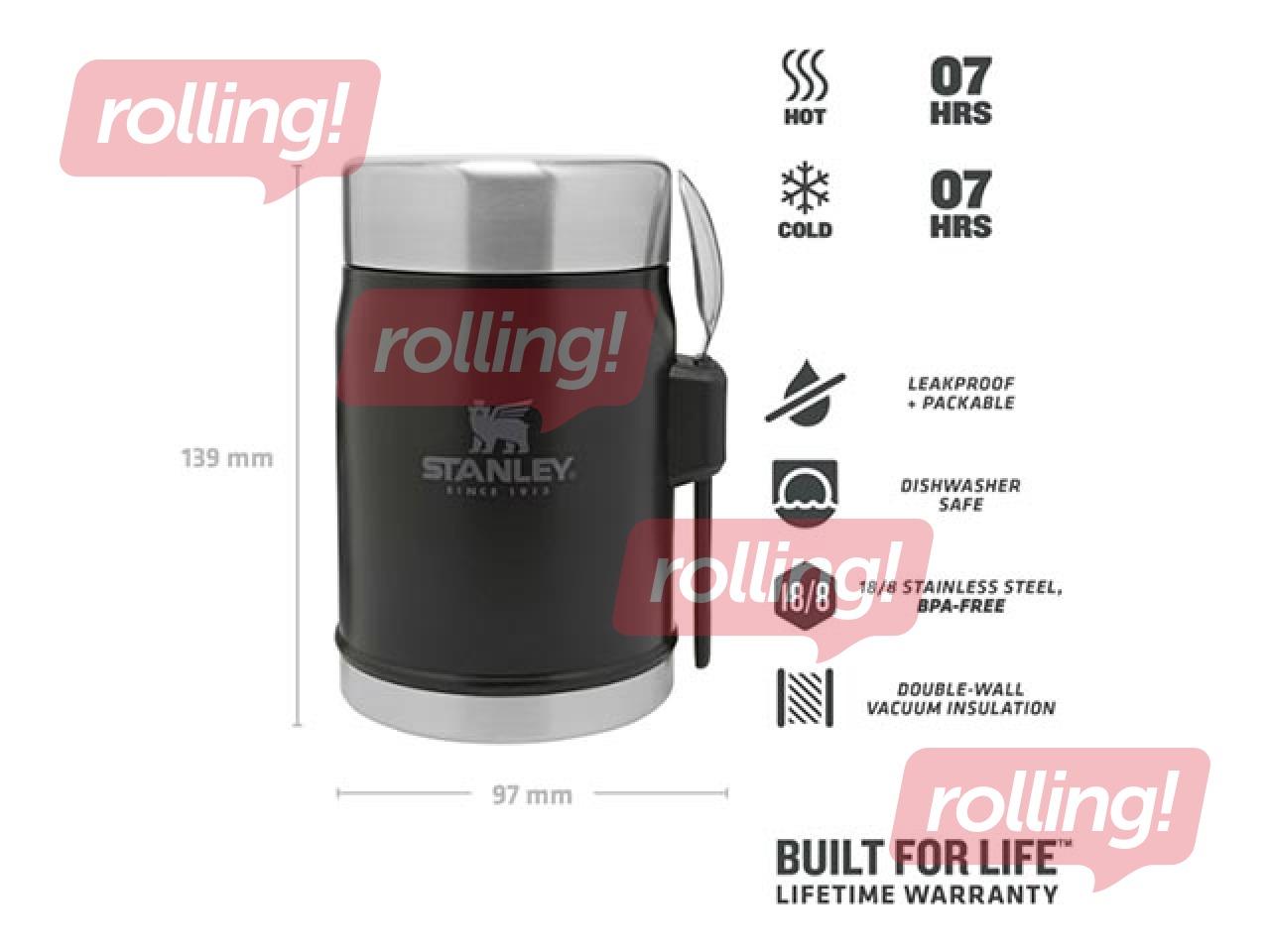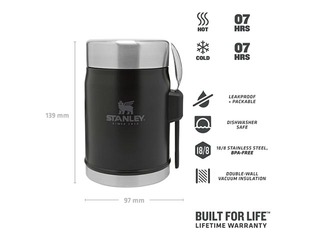 Termoss ēdienam Stanley, The Legendary Food Jar + Spork, matēti melns, 0.4l