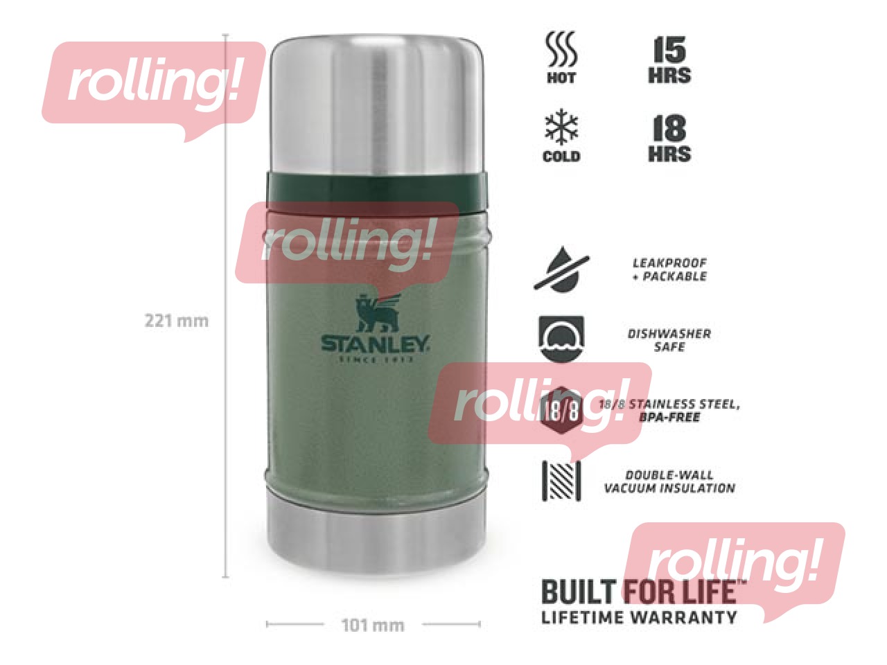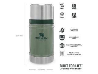 Stanley Legendary Classic termoss ir bestsellers termosu pasaulē. Tam ir sena vēsture, kas aizsākas tālajā 1913.gadā. Stanley termosi vienmēr būs sastopami gan piknikos dabā, gan virtuvēs un birojos. Šis zīmols ir iemantojis cilvēku uzticību jau daudzās paaudzēs. Piepildiet termosu ar zupu, putru vai jebkuru  citu siltu vai karstu ēdienu, to varat baudīt atrodoties kā mājās, tā arī darbā, birojā, dodoties brīvā dabā, kempingā, ceļojot.