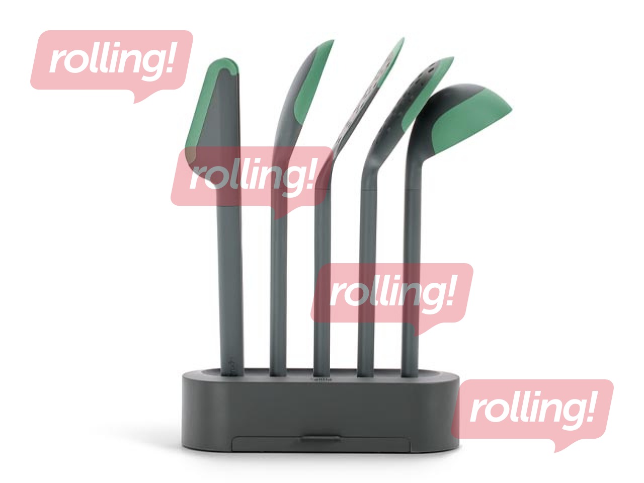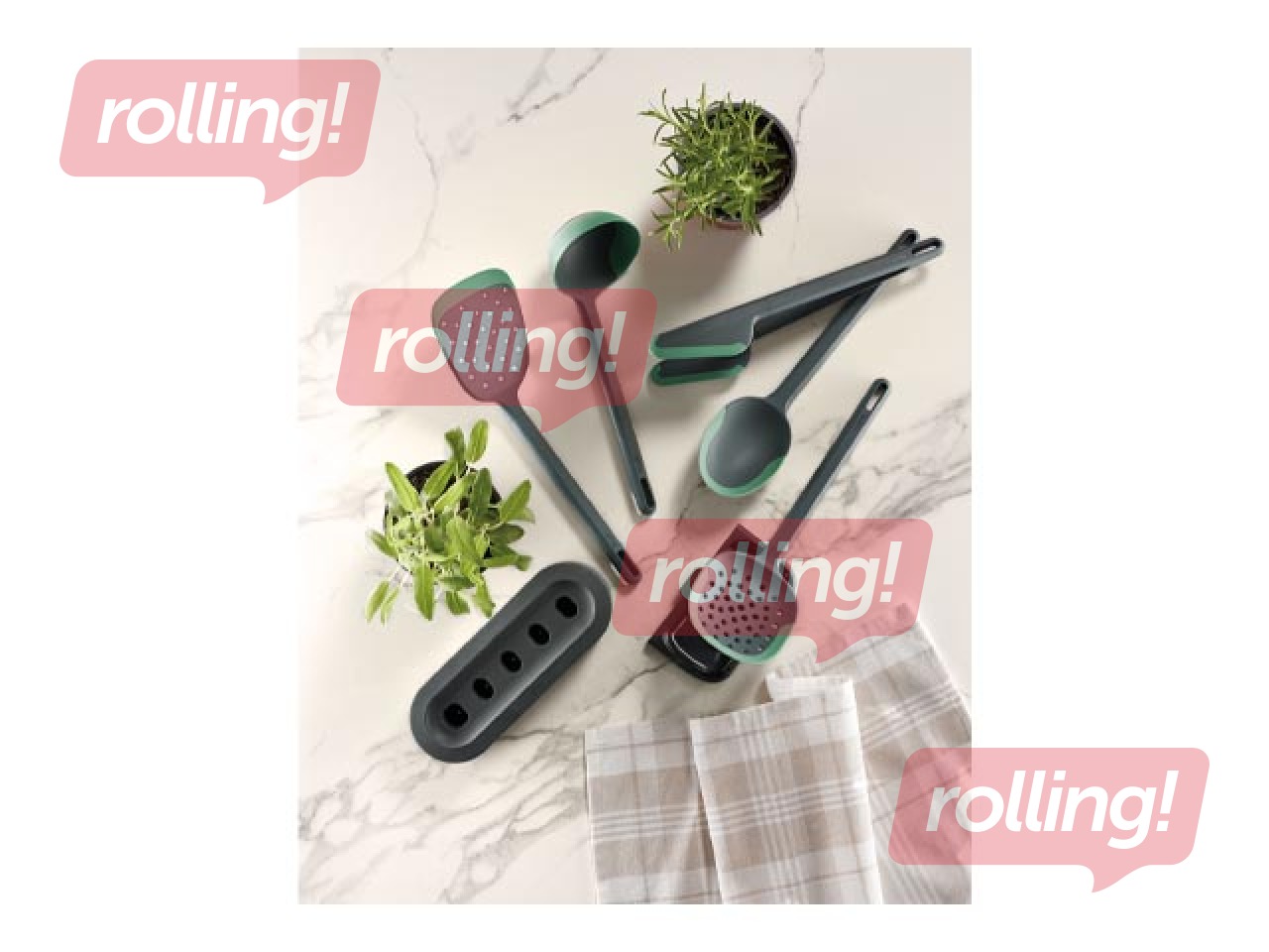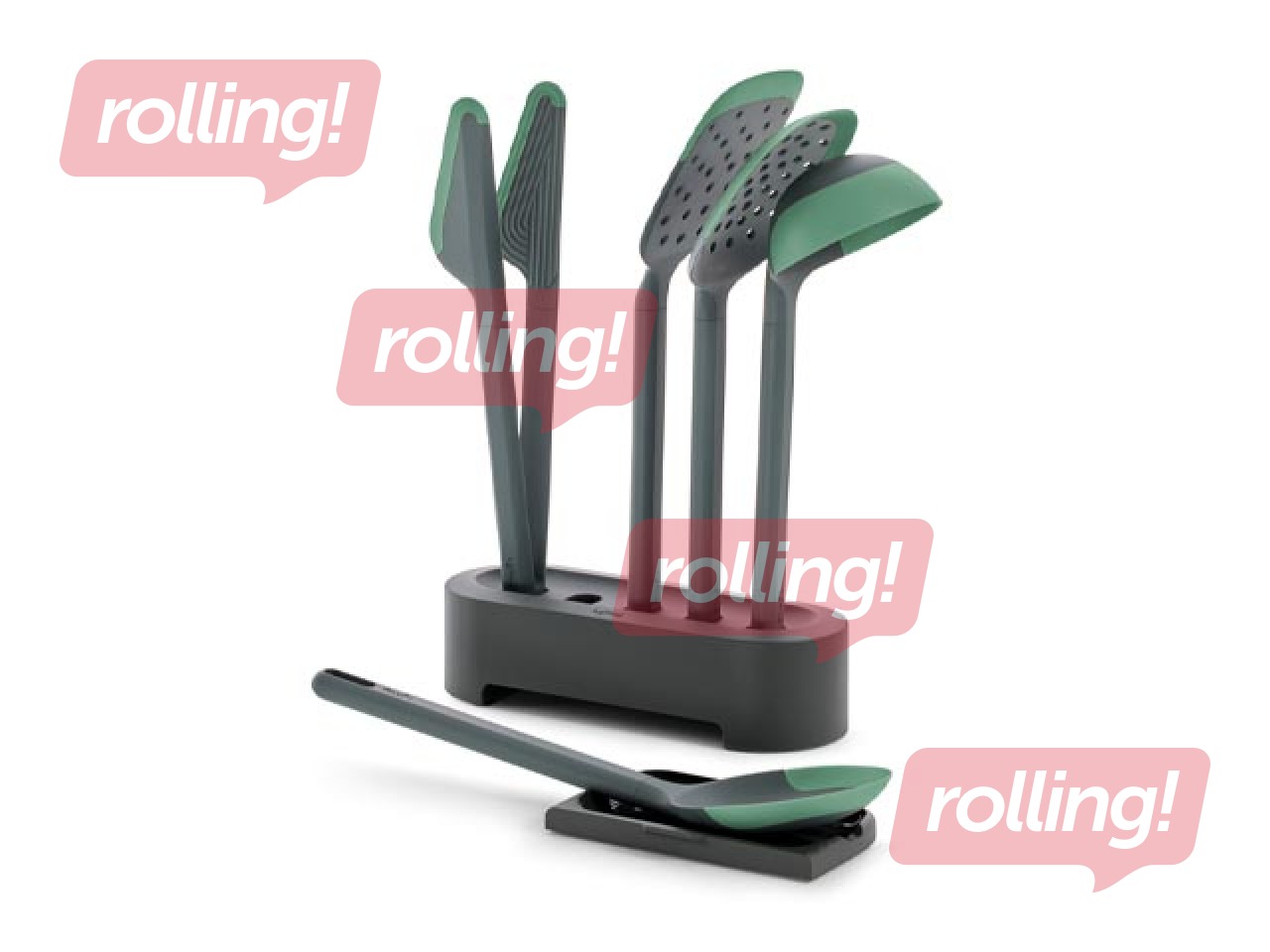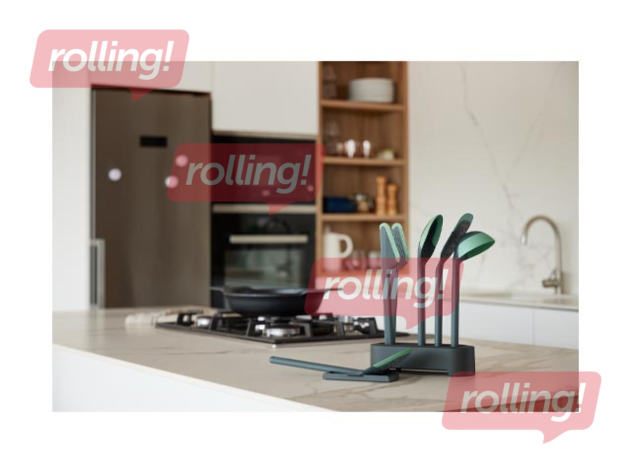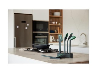 • Komplektā iekļauts arī paliktnis piederumu novietošanai gatavošanas laikā, saglabājot virsmu tīru. Praktisks un estētisks virtuves aksesuārs.