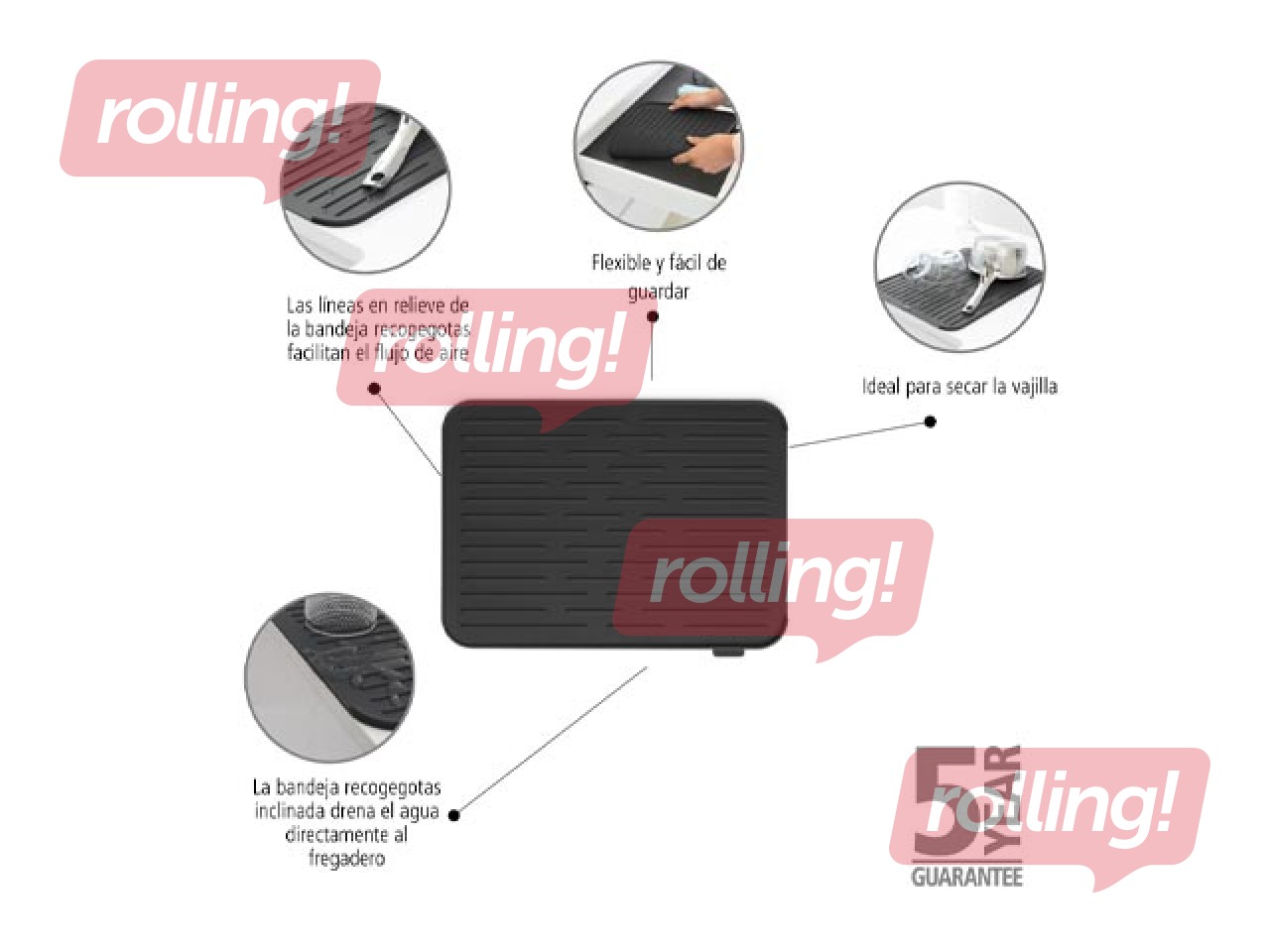 Priekšrocības un īpašības: • Laika ietaupījums – ideāli piemērots trauku žāvēšanai • Neskrāpē un nebojā – izgatavots no mīksta silikona • Sauss virsmas laukums – paaugstināta mala notur ūdeni uz paliktņa • Ātrāka žāvēšana – rievots dizains nodrošina gaisa plūsmu • Viegli uzglabāt – salokāms uz pusēm • Higiēnisks – viegli tīrāms, piemērots trauku mazgājamajai mašīnai • Lietošana bez raizēm – 5 gadu garantija un serviss
