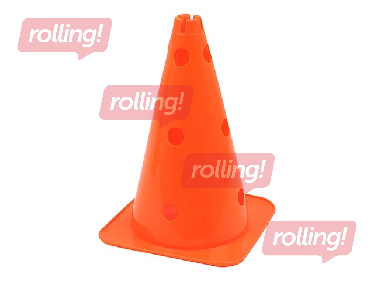Konuss ar caurumiem nūju ievietošanai. Izturīgi plastmasas konusi. Stabili turas uz pamatnes. Caurumu diametrs 25 mm vingrošanas nūjām no visām četrām pusēm. Izmantojot divus no šiem konusiem, jūs varat viegli izveidot sporta barjeru augstiem lēcieniem vai futbola vārtiem. Nūjas nav iekļautas komplektā.