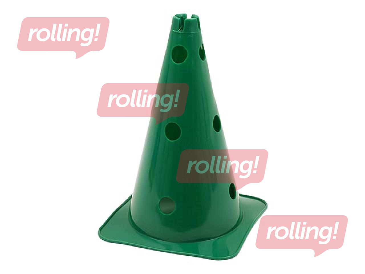Konuss ar caurumiem nūju ievietošanai. Izturīgi plastmasas konusi. Stabili turas uz pamatnes. Caurumu diametrs 25 mm vingrošanas nūjām no visām četrām pusēm. Izmantojot divus no šiem konusiem, jūs varat viegli izveidot sporta barjeru augstiem lēcieniem vai futbola vārtiem. Nūjas nav iekļautas komplektā.