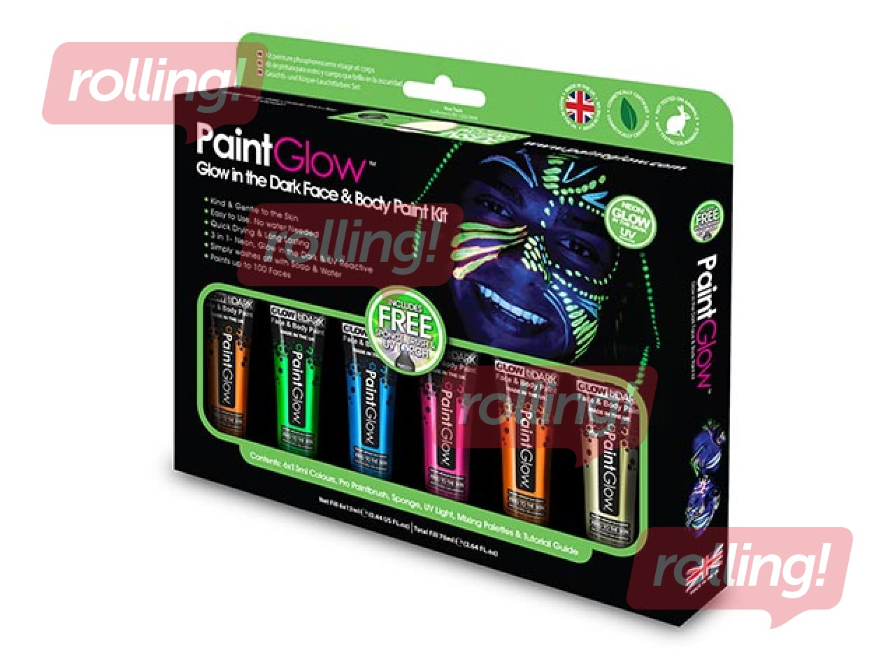 Ķermeņa un sejas krāsu komplekts, PaintGlow, luminiscējošs
