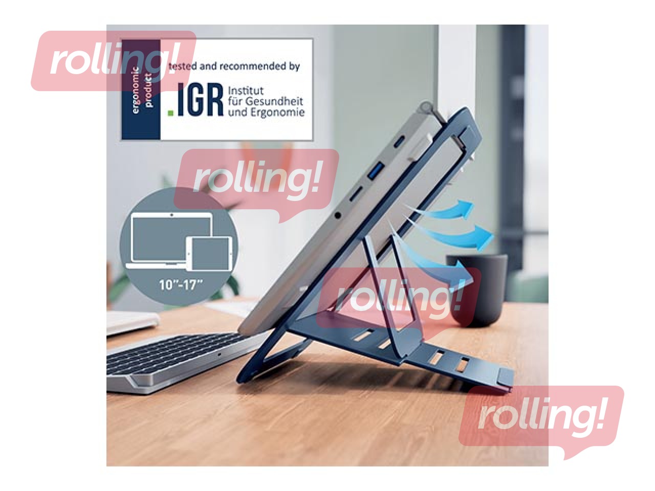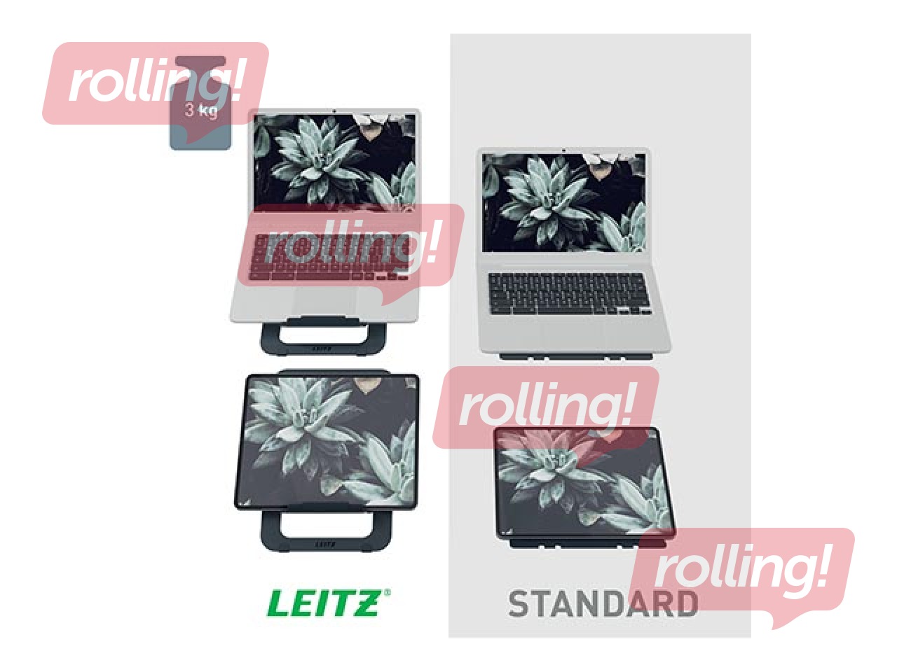 Leitz Ergo alumīnija, īpaši plakanais, regulējamais klēpjdatora statīvs piedāvā 5 augstuma iestatījumus ergonomiskai klēpjdatora vai planšetdatora lietošanai. Tā plānais un pārnēsājamais dizains ar aizsargmaciņu nodrošina ērtu pārvadāšanu un uzglabāšanu. Izgatavots no izturīga alumīnija, tas uzlabo gaisa plūsmu un stabilitāti. Ar videi draudzīgu, pārstrādājamu iepakojumu bez plastmasas tas ir ideāli piemērots komforta un produktivitātes uzlabošanai mājās, birojā vai ceļā.