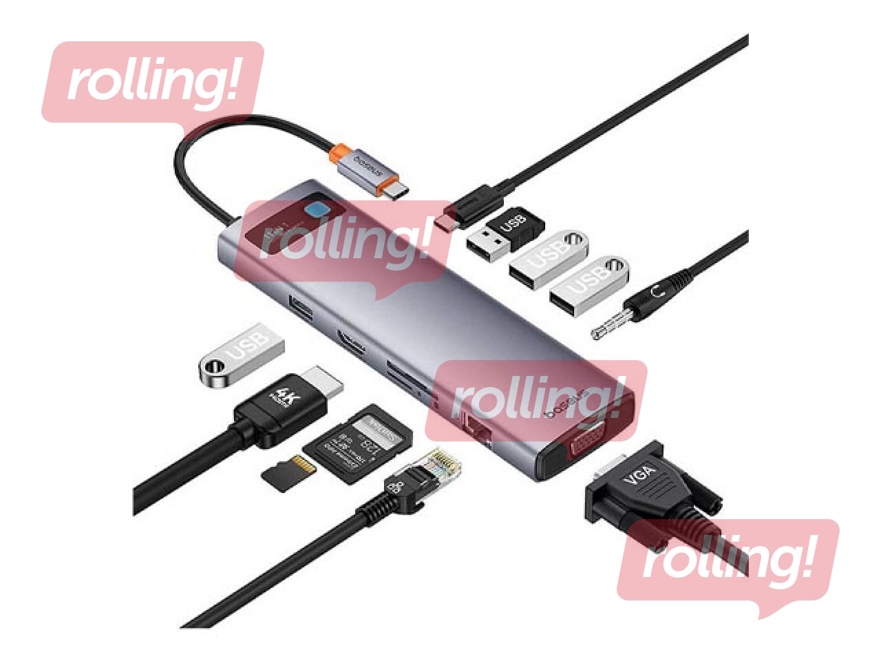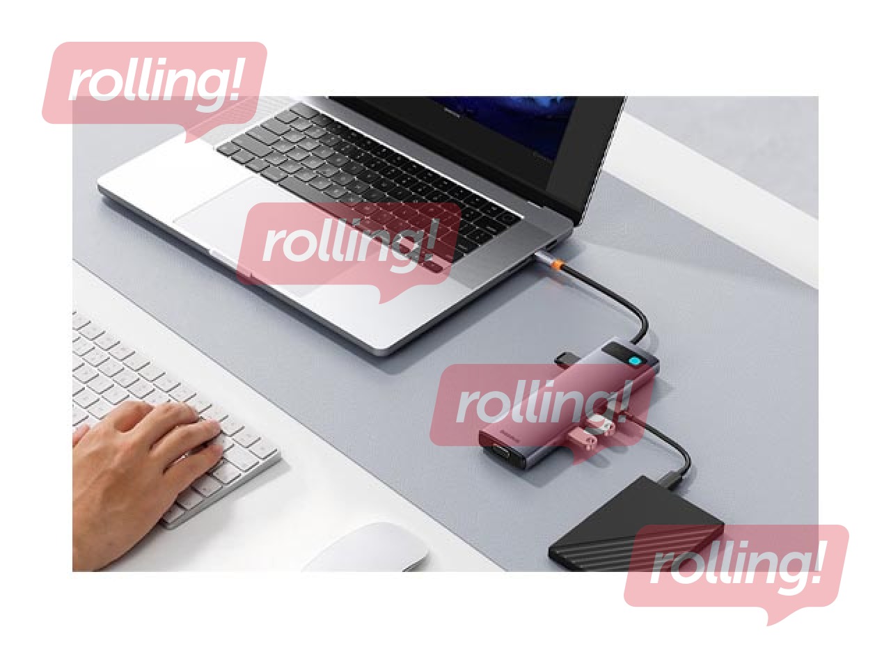 11-in-1 centrmezgls no Baseus ir ideāls sabiedrotais darbam, mācībām un izklaidei. Izmantojiet to mājās, birojā vai ceļā un izbaudiet plašu iespēju klāstu. Ja jūsu planšetdators vai tālrunis atbalsta OTG, varat tam pievienot ārējos diskus, ļaujot ērti palielināt krātuves vietu. Varat arī izmantot centrmezglu, lai klēpjdatoram pievienotu perifērijas ierīces, kas palielinās jūsu darba efektivitāti.