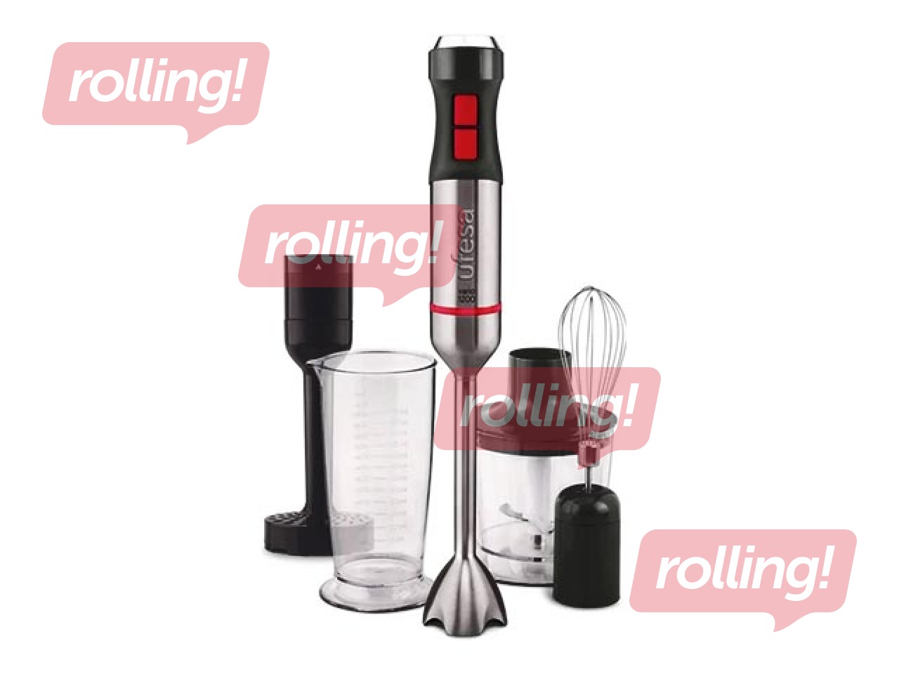 Rokas blendera komplekts Ufesa, kuram ir izstrādāts īpašs, ergonomisks dizains, kas neļauj veidot šļakatas.